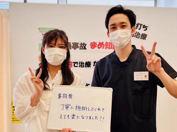 今ではすっかり楽になり、日常生活に支障なく過ごせています。事故後の痛みで悩んでいる方には本当におすすめです!